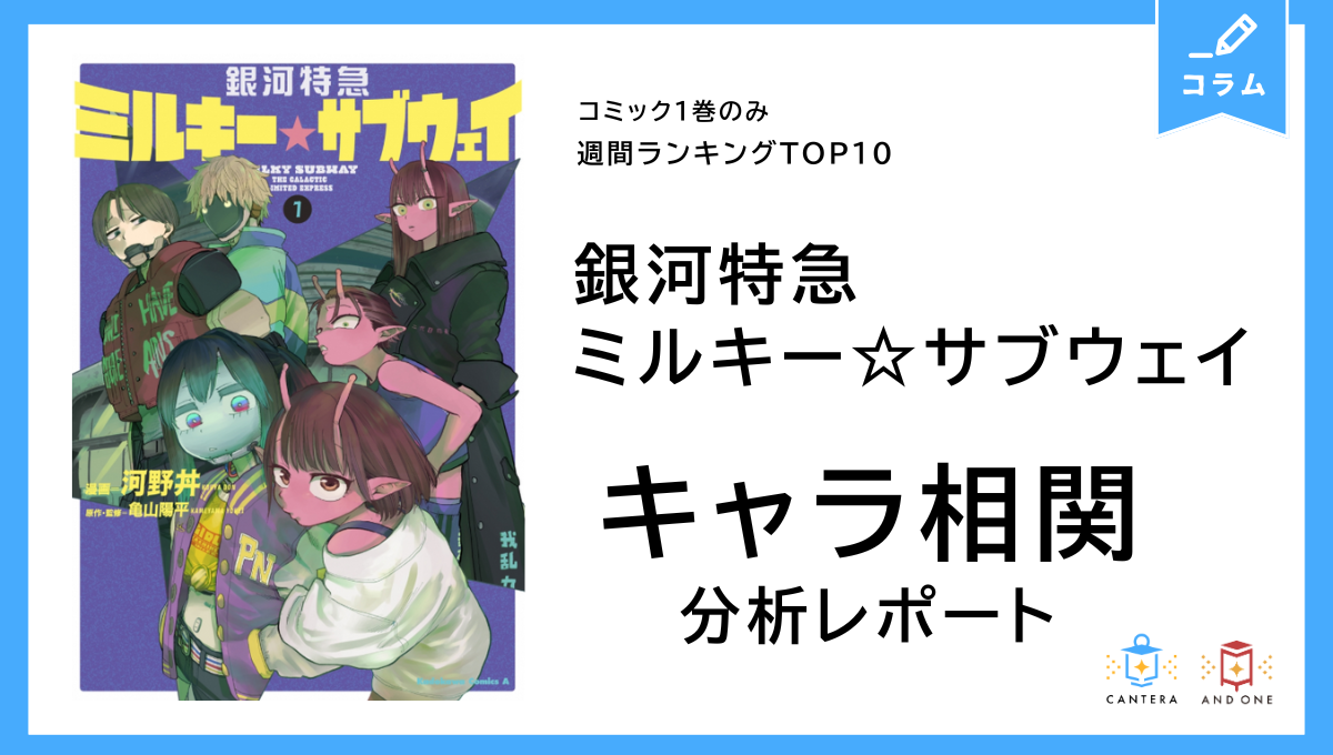 先週のランキング1位は、先々週に引き続き人気漫画『呪術廻戦』の “68年後の未来” を舞台にした公式スピンオフ作品「呪術廻戦Ξ-モジュロ-」/岩崎優次(集英社)。依然としてトップを維持しています。2位には初登場で、ショートアニメ原作ならではの勢いをそのままにコミカライズ化された「銀河特急 ミルキー☆サブウェイ」/河野丼(KADOKAWA)。本作は2025年に公式YouTubeにて 11言語・全世界同時配信され、総再生数1.5億回を突破した大ヒットショートアニメのコミカライズです。1話3分半という超短尺ながら、キャラクター同士の“クセ強”すぎる掛け合いが話題となり、一気に人気作品へと躍進しました。さらに、2026年2月には劇場版「銀河特急 ミルキー☆サブウェイ 各駅停車劇場行き」の公開も控えており、今もっとも勢いのあるタイトルの一つといえます。3位は、先週のコラム:30代男性に刺さる 深夜ラジオの共感でも紹介した「さむわんへるつ」/ヤマノエイ(集英社)。深夜ラジオを通じて繋がる高校生の青春ラブコメとして、口コミ中心にじわじわと人気を広げています。4位以下には、当週発売の注目新刊が多数ランクインしています(下図参照)。