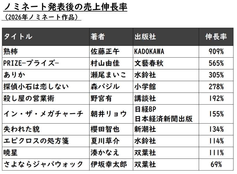 (2026年本屋大賞ノミネート作品)数字は嘘をつかない⁉:大賞前に市場が示す“先行サイン”