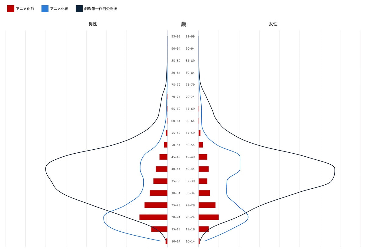 劇場版公開後はさらに大きく変化。30代前半〜40代後半の読者層が大きく増加しました。